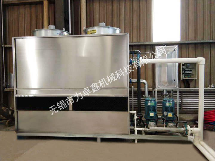 冷卻器在填料上方,進、排風與噴淋水的方向形成同向流動,有效避免干點,噴淋水把管子外壁完全覆蓋,防止在干點部位生成水垢。